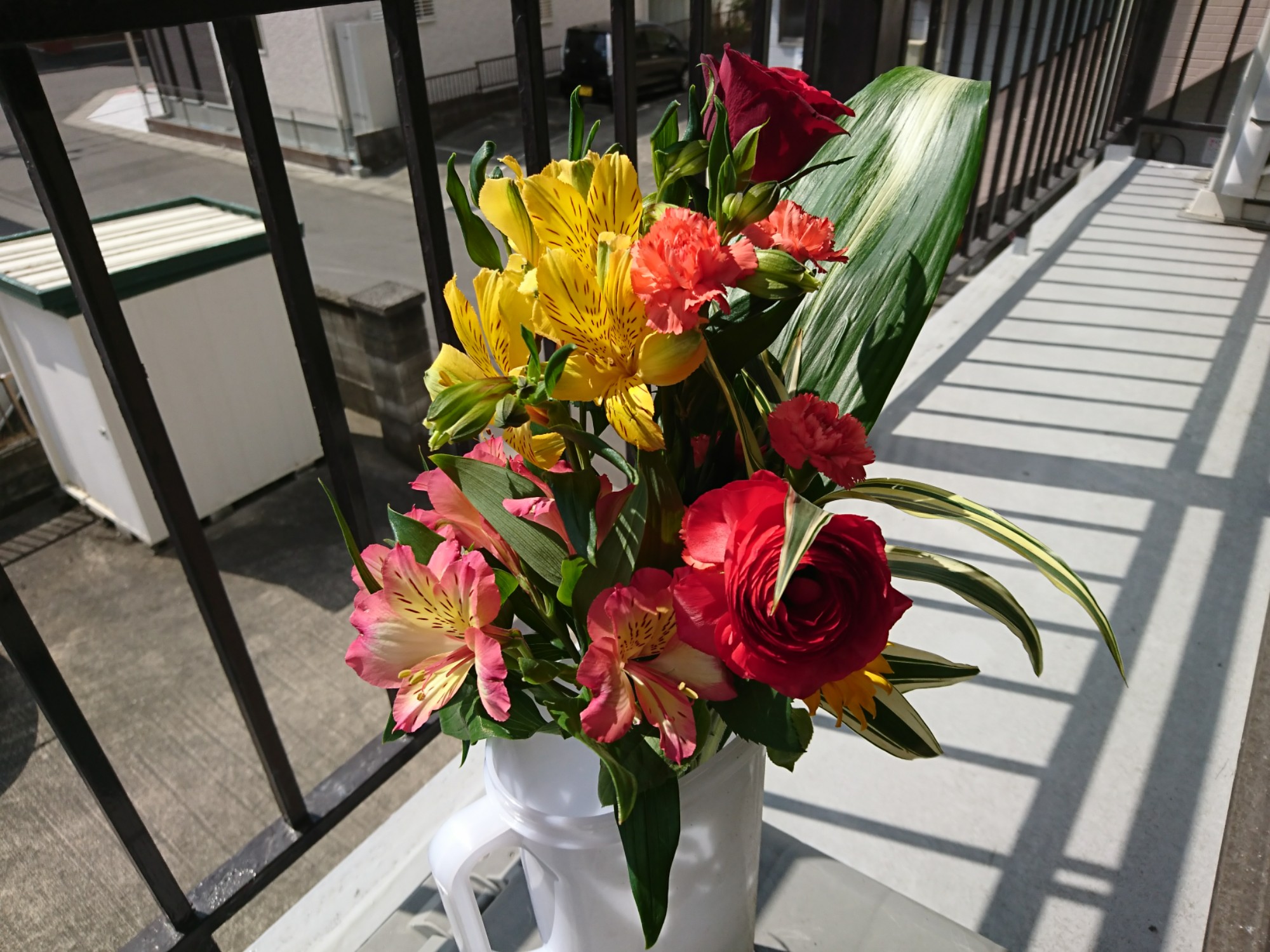 花束をいただいた記憶があまりなく、小中学校の卒業式くらいで