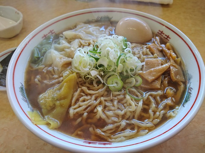 朝昼兼用で、青鬼のワンタン麺。