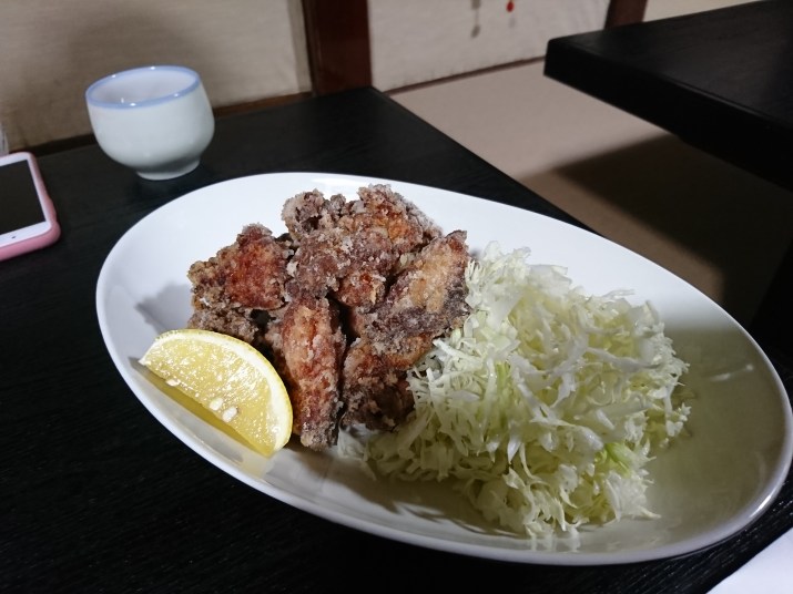 山形の郷土料理がたくさんの定食、塩麹から揚げ