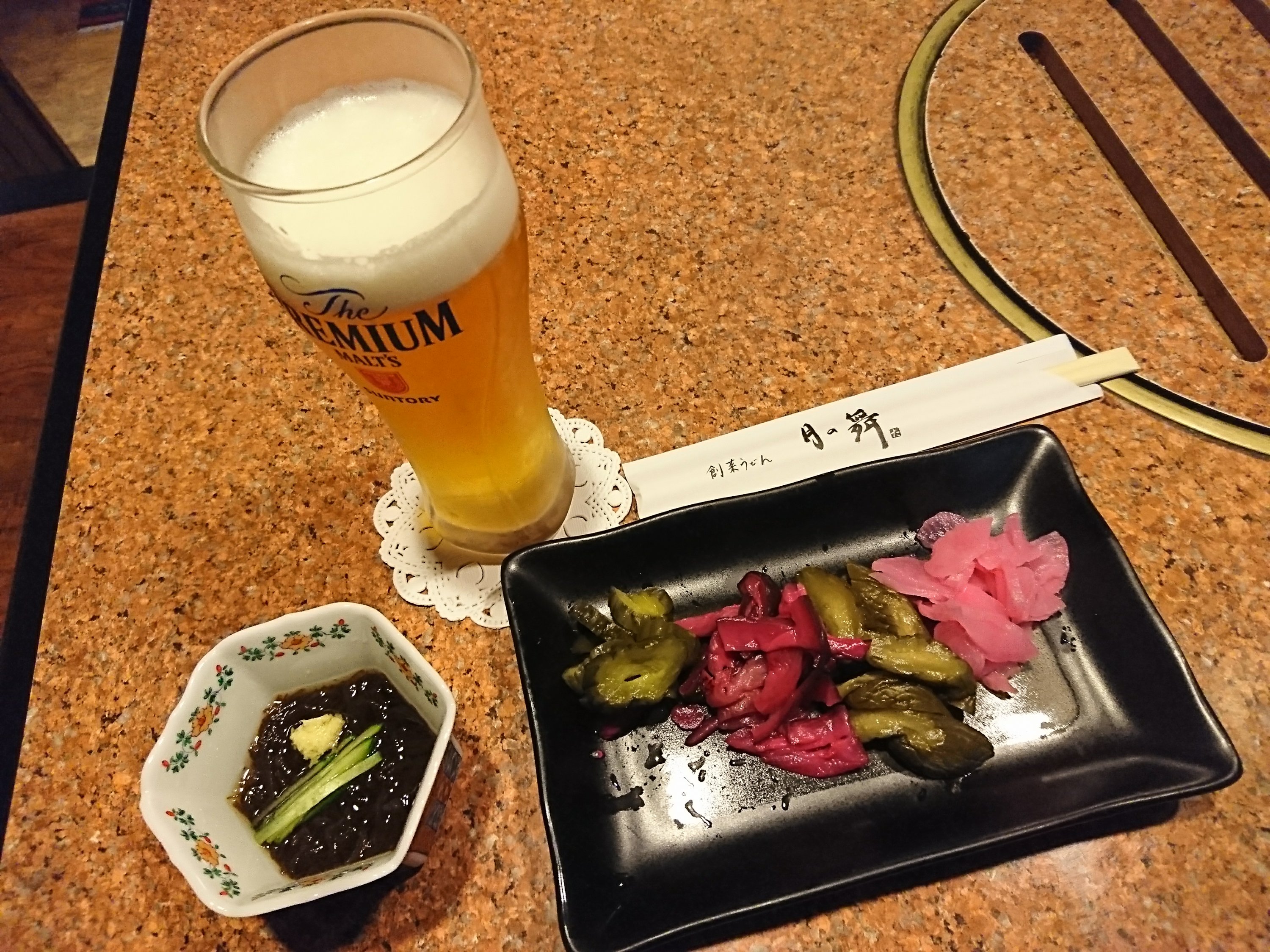 ハイボールが無かったので、ビールと漬物、もずく酢を楽しみながら