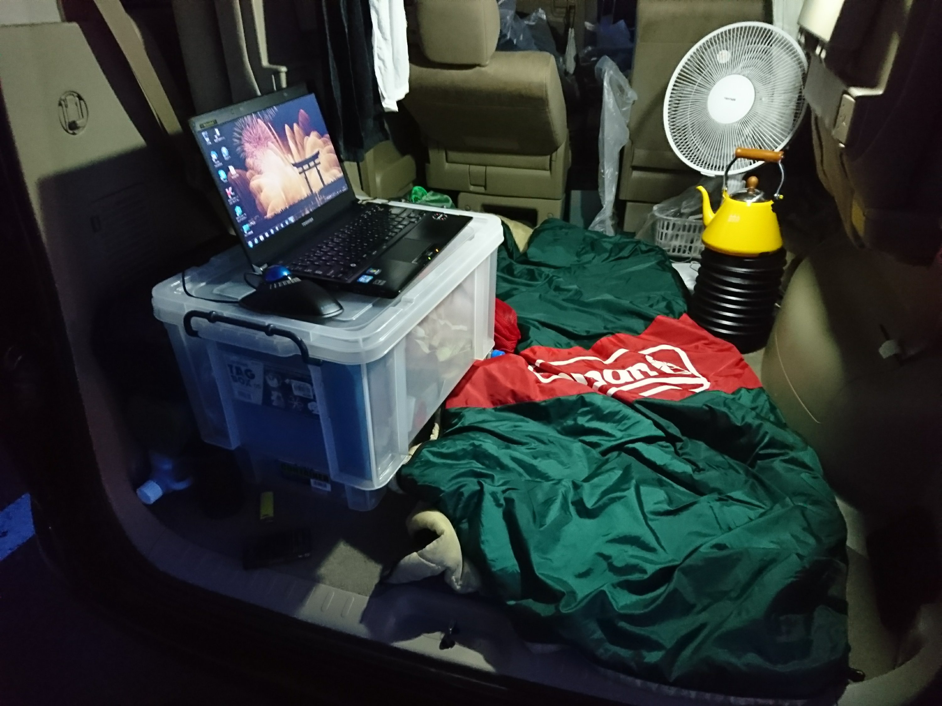 今日は車中泊で過ごしております。