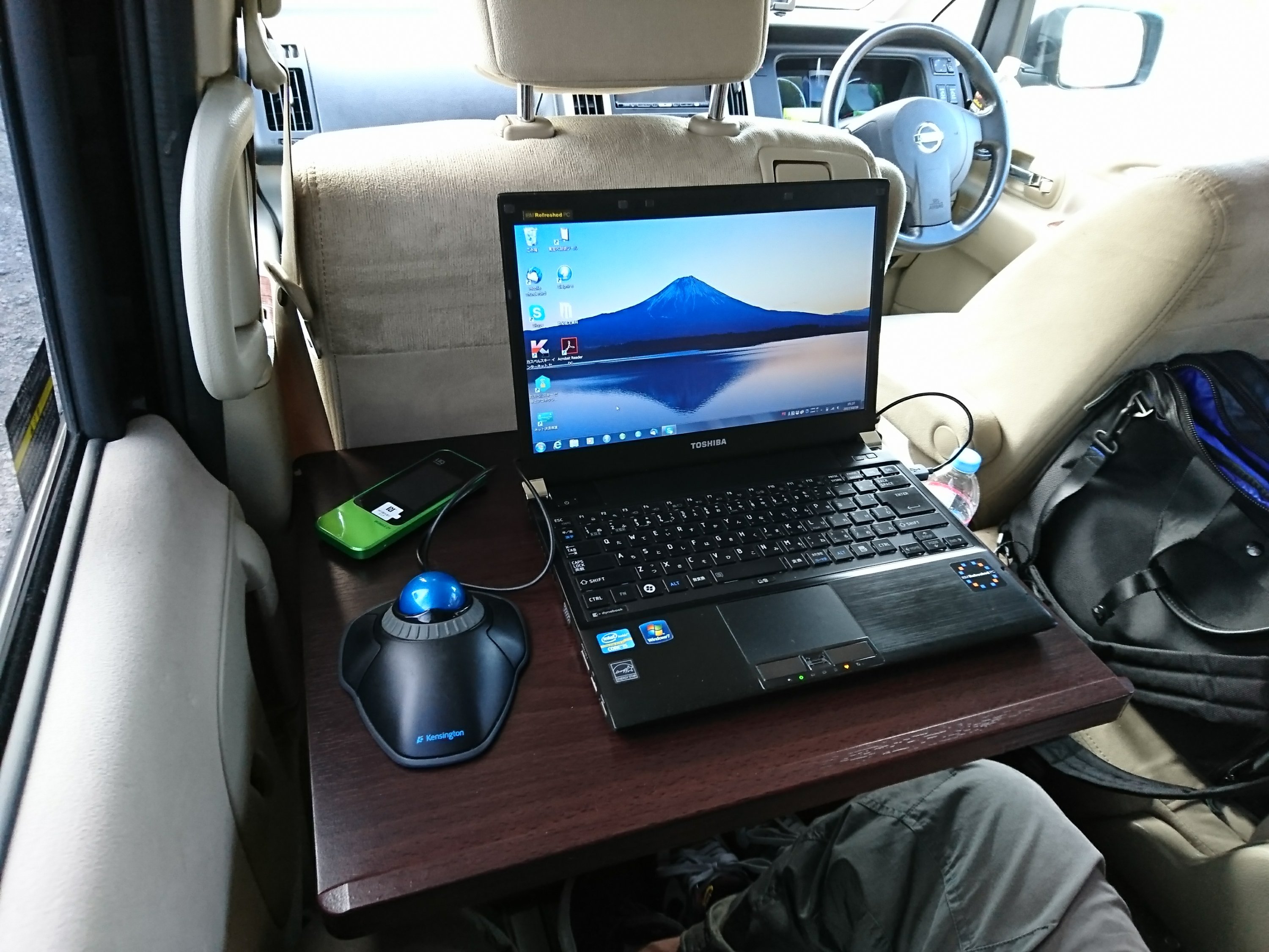 助手席後ろのシートを活かそうと、折りたたみの机を置いてみました。