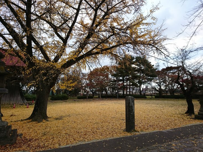 曇り空でしたが、イチョウで地面が真黄色で綺麗でした。