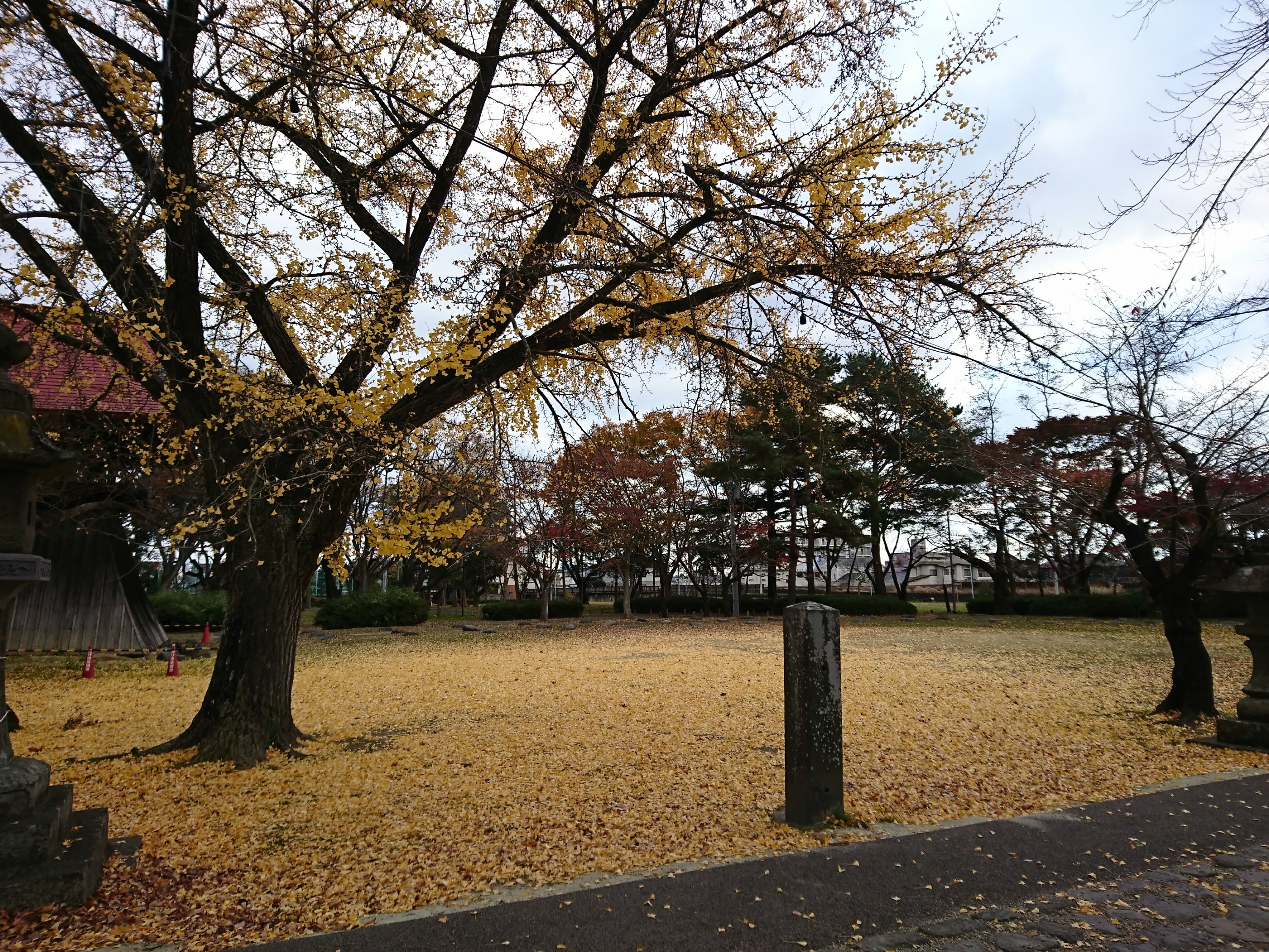 曇り空でしたが、イチョウで地面が真黄色で綺麗でした。